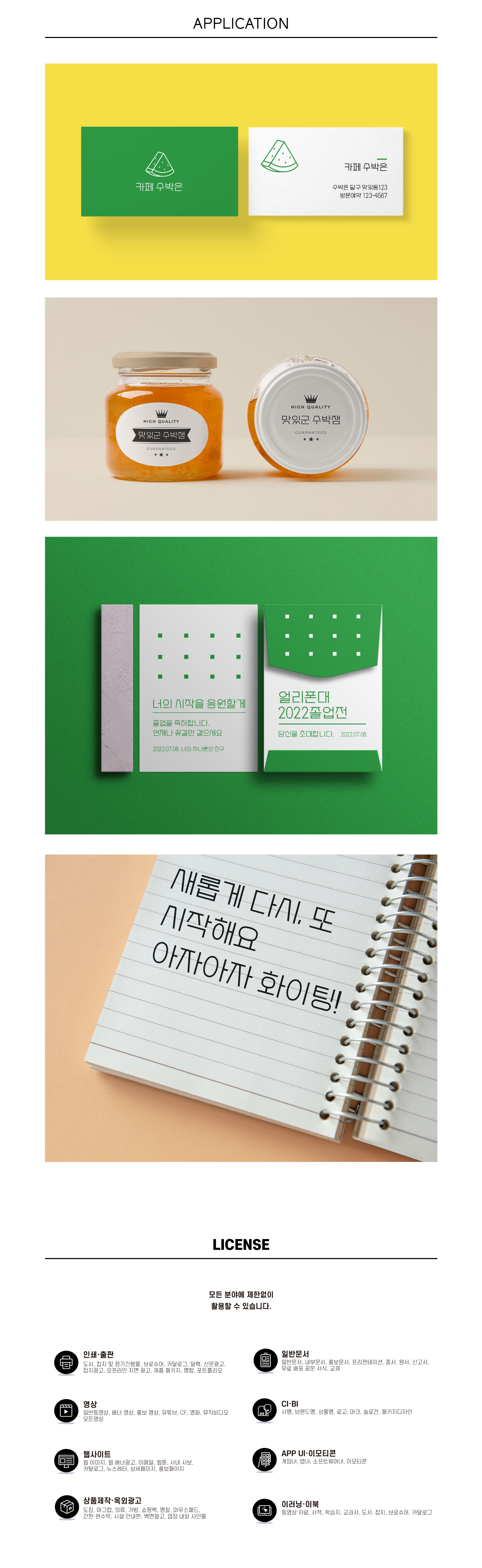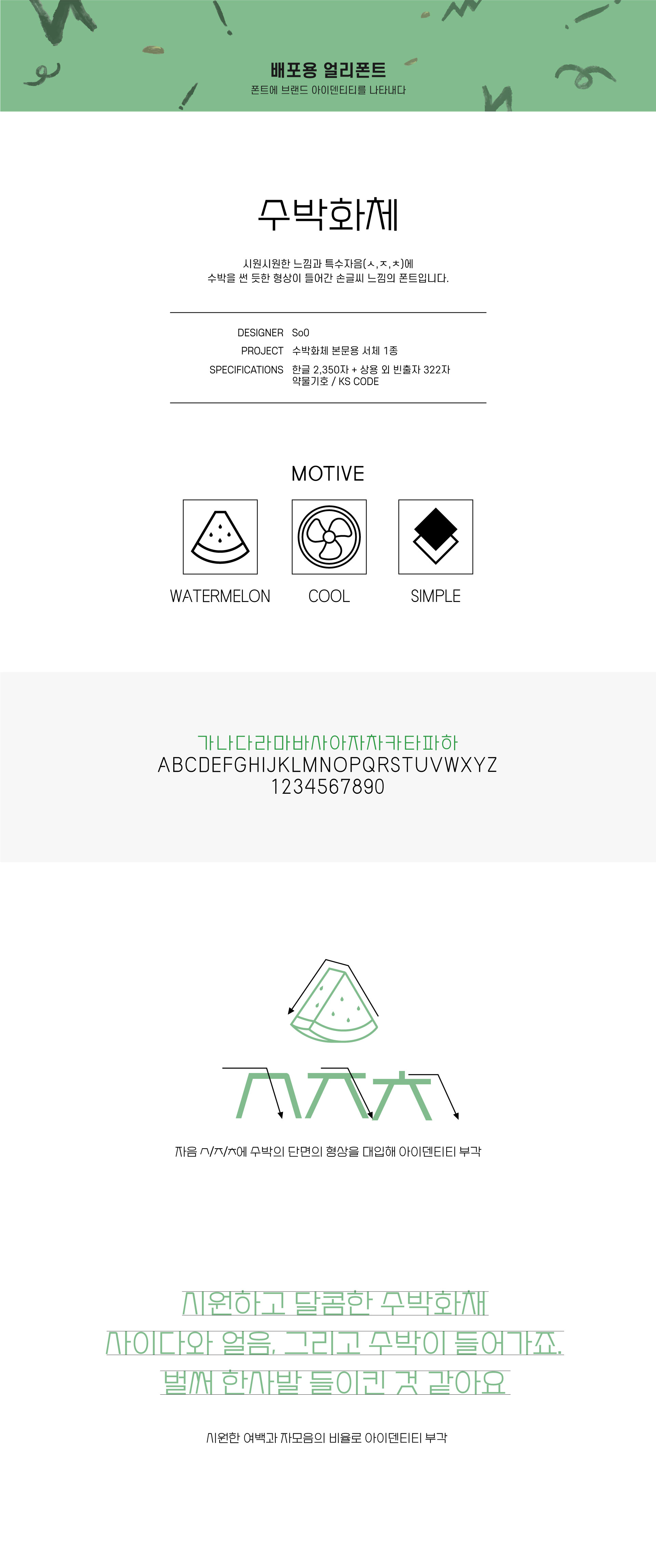 수박을 썬 듯한 형상이 들어간 손글씨 느낌의 폰트입니다.