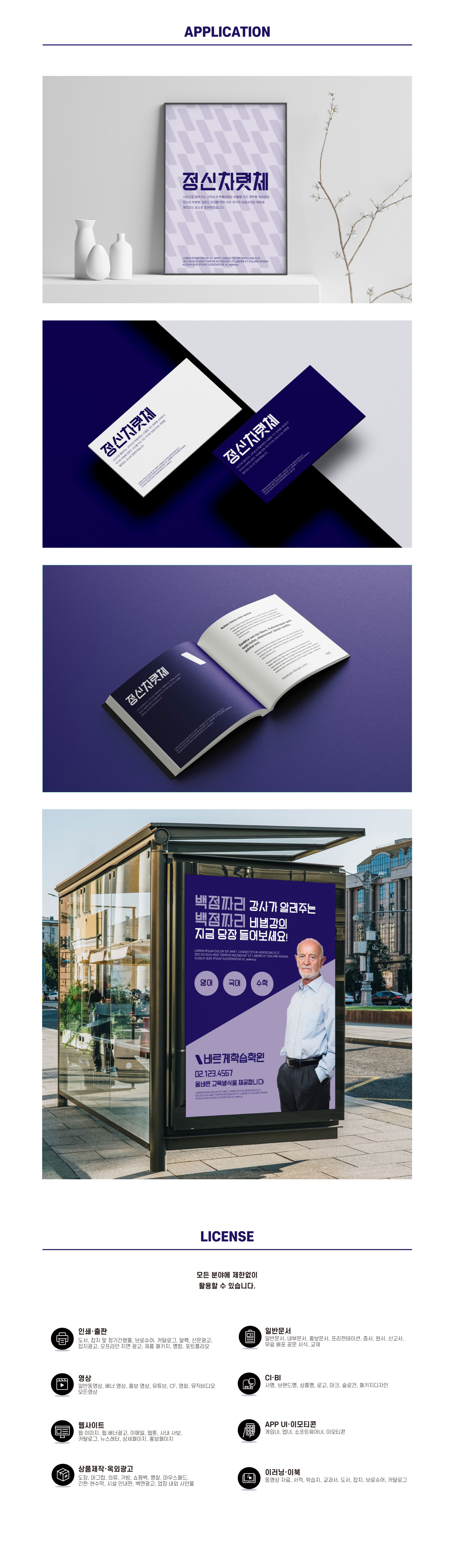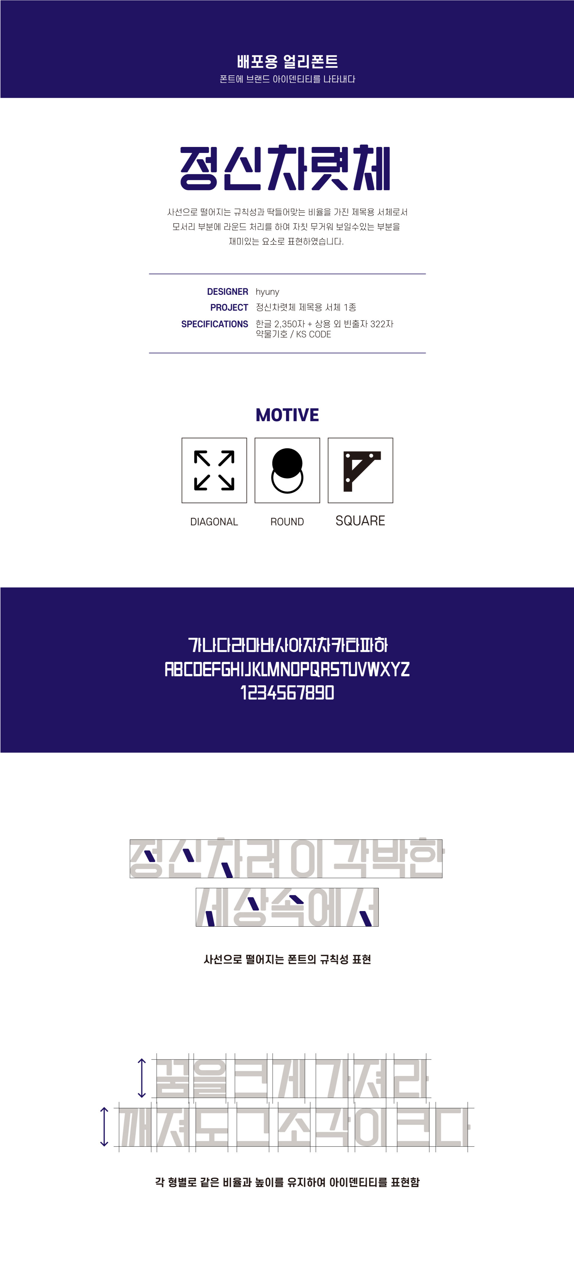 사선으로 떨어지는 규칙성과 딱들어맞는 비율을 가진 제목용 서체로서
